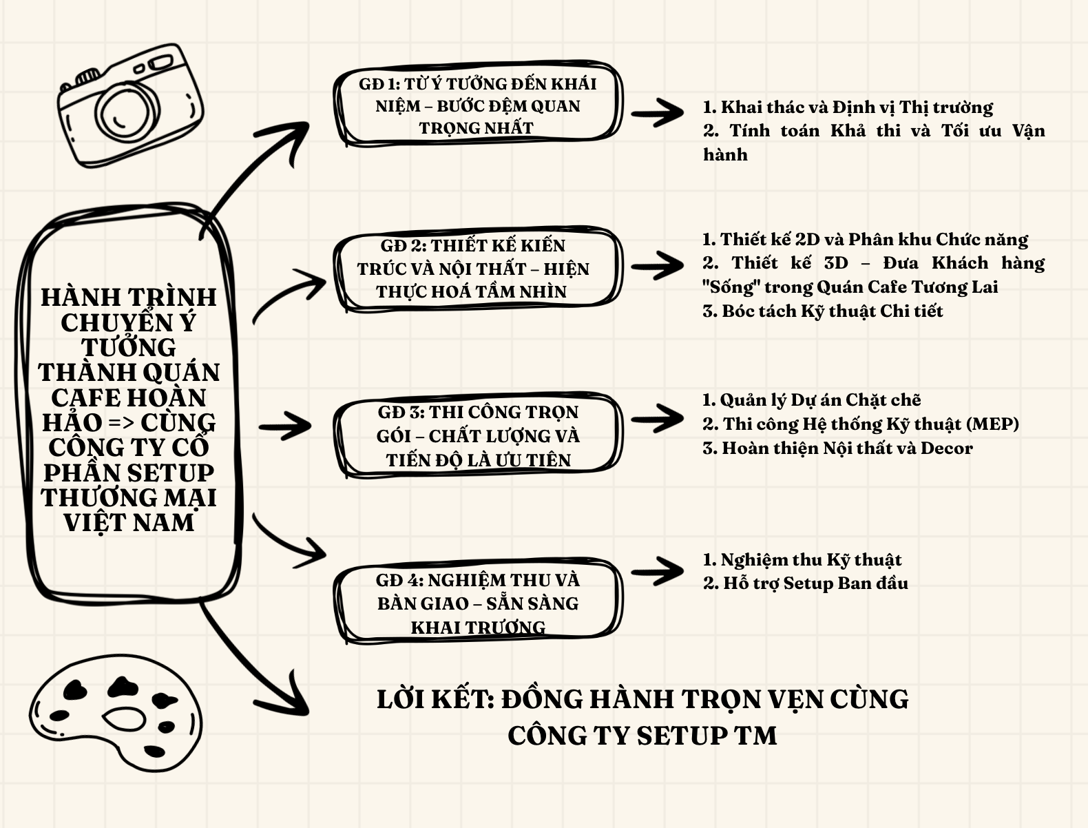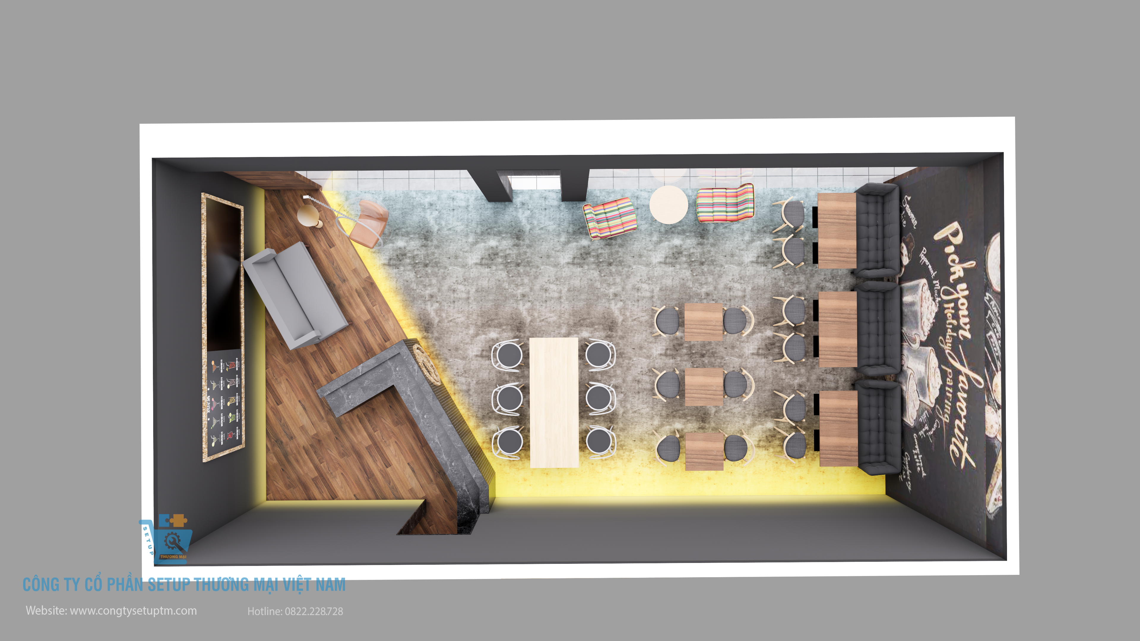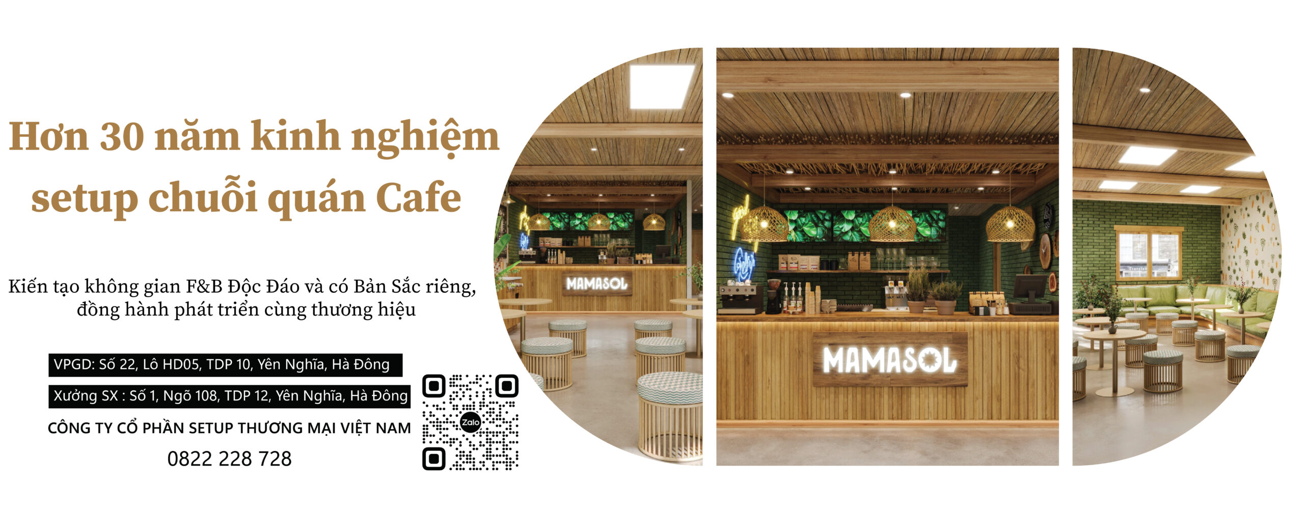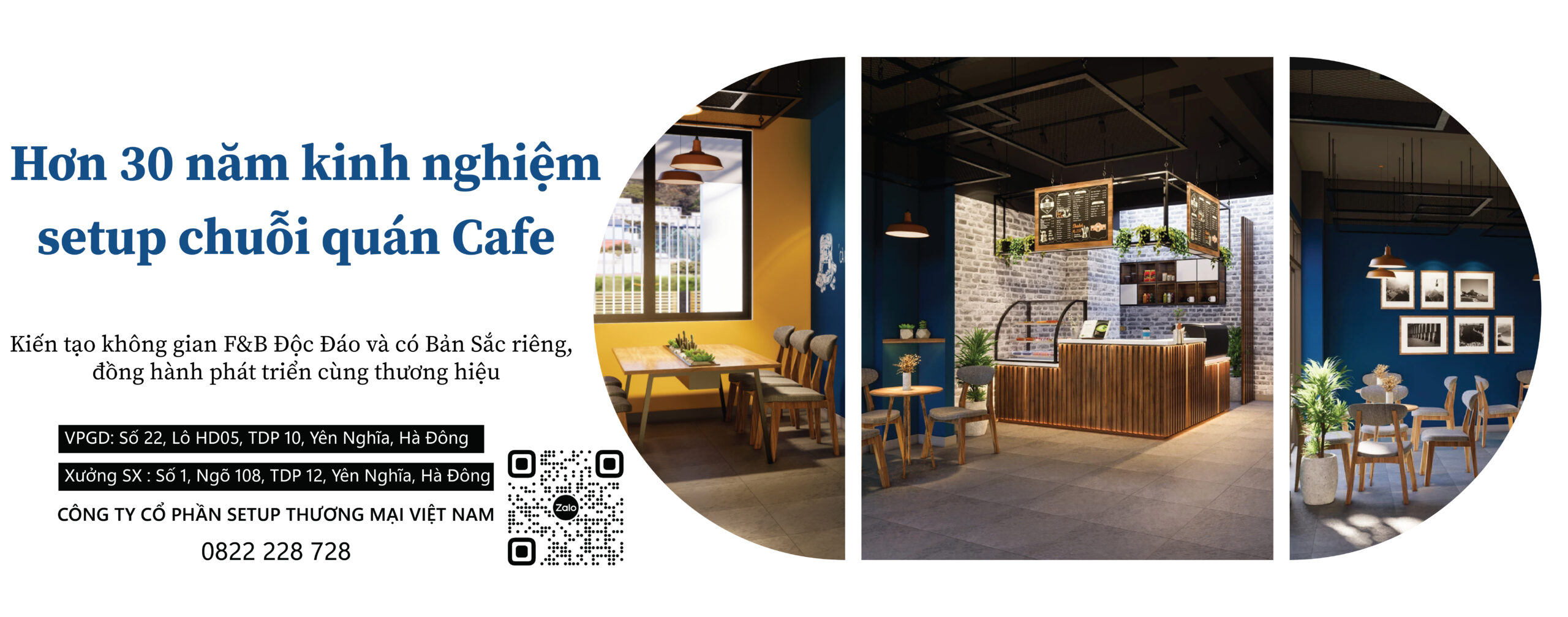 Với hơn 10 năm kinh nghiệm, hình thành và phát triển Công ty CP Setup Thương Mại Việt Nam đã có những bước phát triển không ngừng, trở thành đơn vị hàng đầu hoạt động trong lĩnh vực Tư Vấn, Thiết Kế & Thi Công Nội Thất, kiến tạo thương hiệu. Với đội ngũ thiết kế và các chuyên gia tư vấn tài năng, sáng tạo, cùng đội ngũ thợ kỹ thuật lành nghề có kinh nghiệm trong lĩnh vực thi công công trình. Chúng tôi tin tưởng sẽ mang đến cho quý khách sự hài lòng tuyệt đối. Setup Thương Mại Việt Nam không ngừng phát triển và cải thiện để trở thành công ty uy tín – chất lượng – chuyên nghiệp được nhiều chuỗi quán cafe trà sữa và hệ thống nhà hàng tin tưởng. Cùng kim chỉ nam làm có Tâm nhất định có Tầm, rất vinh dự được là đối tác, nhà cung cấp sản phẩm chuyên nghiệp và uy tín tới quý khách hàng.