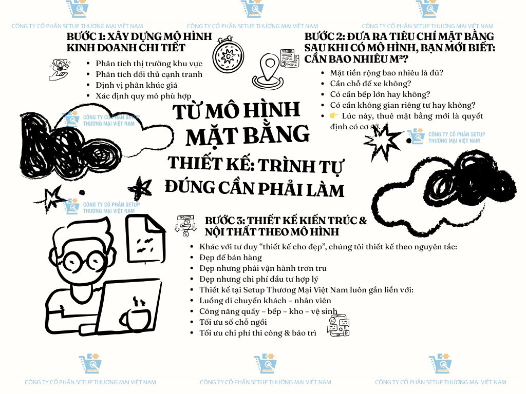 👉 Đừng vội thuê mặt bằng. Đừng vội thiết kế. Hãy bắt đầu từ việc xây dựng mô hình kinh doanh.