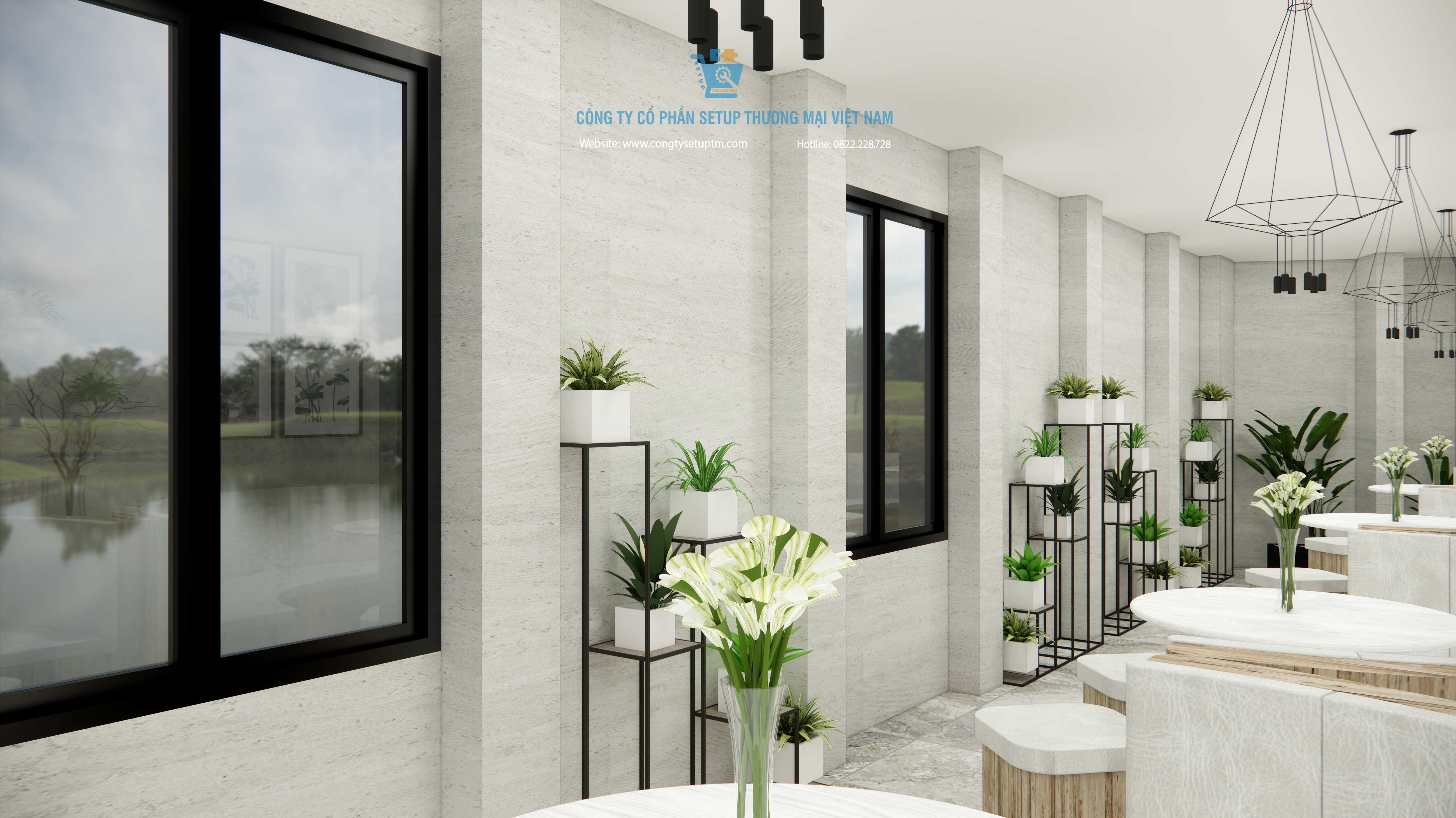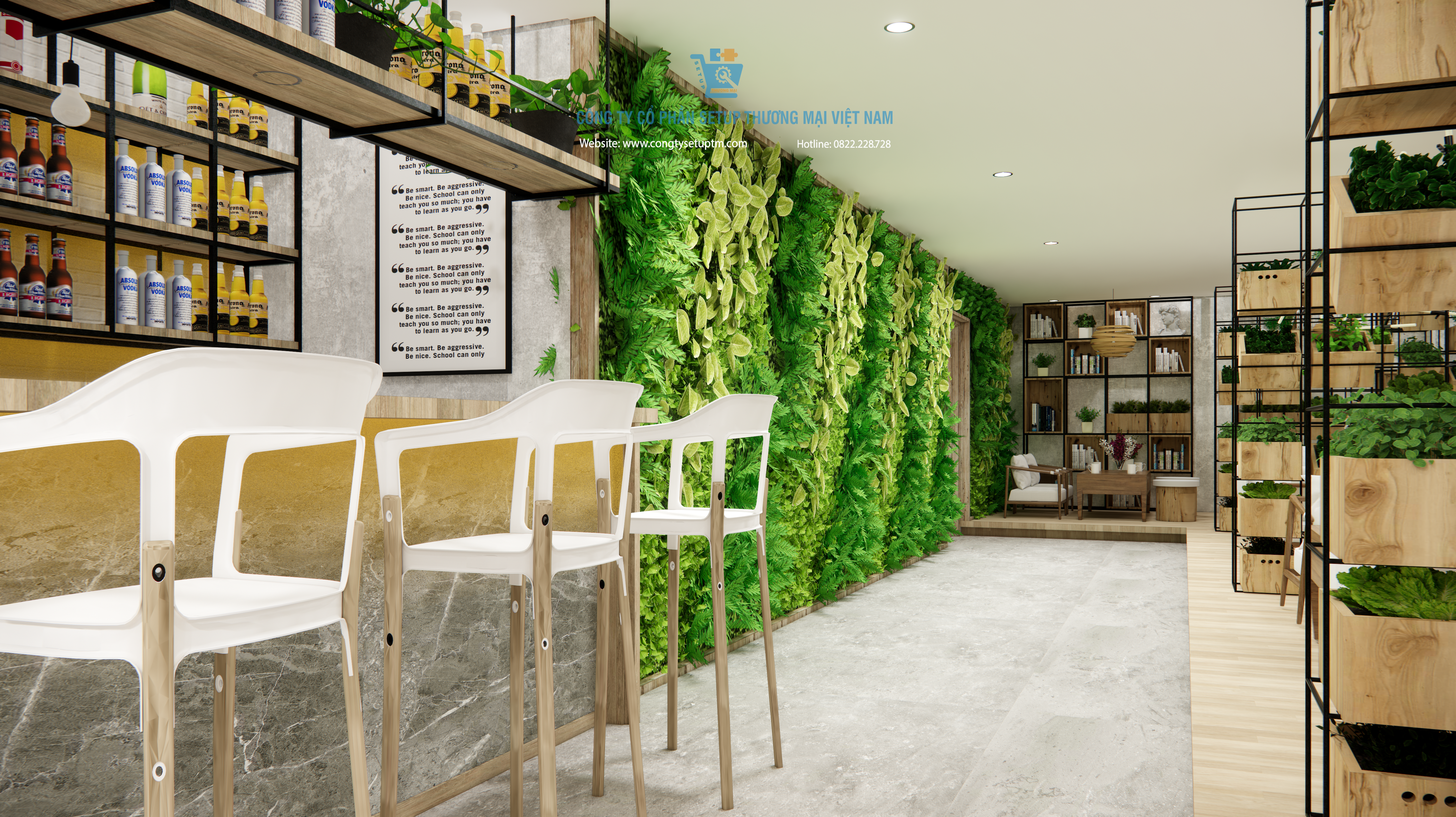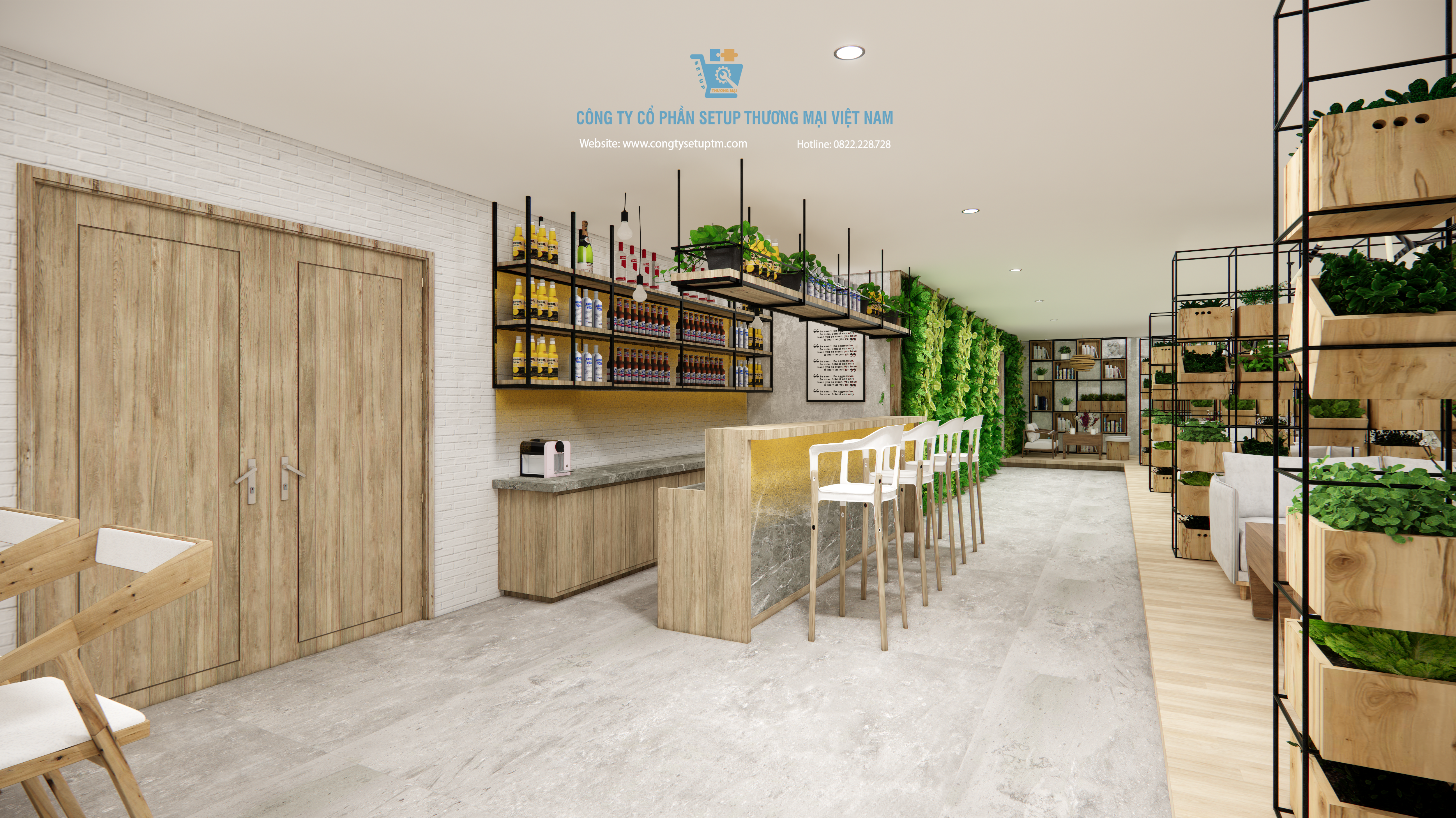 Công trình được Công ty Cổ phần Setup Thương Mại Việt Nam thiết kế và thi công trọn gói, từ khảo sát – ý tưởng – thiết kế – thi công – hoàn thiện – setup vận hành.