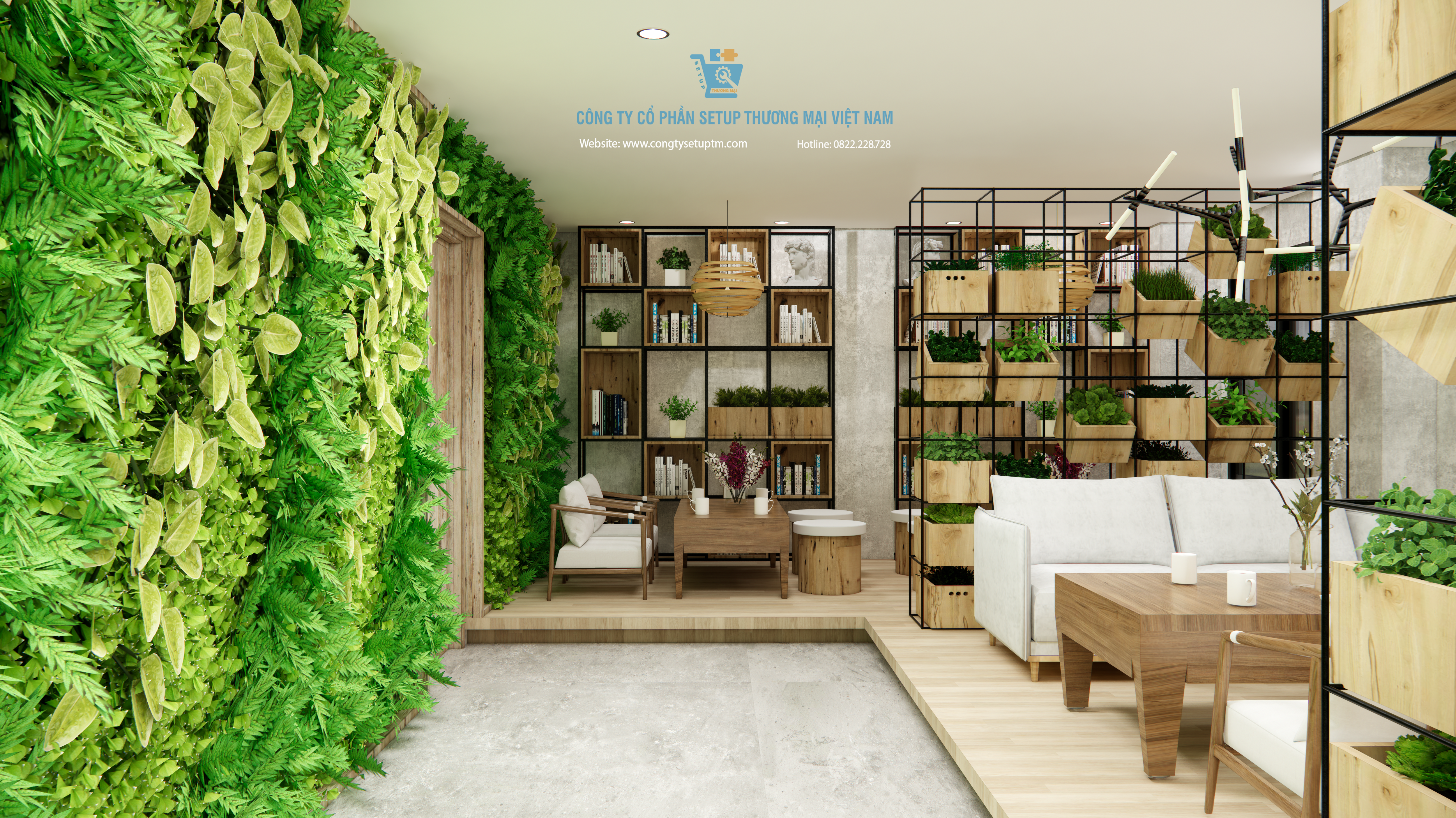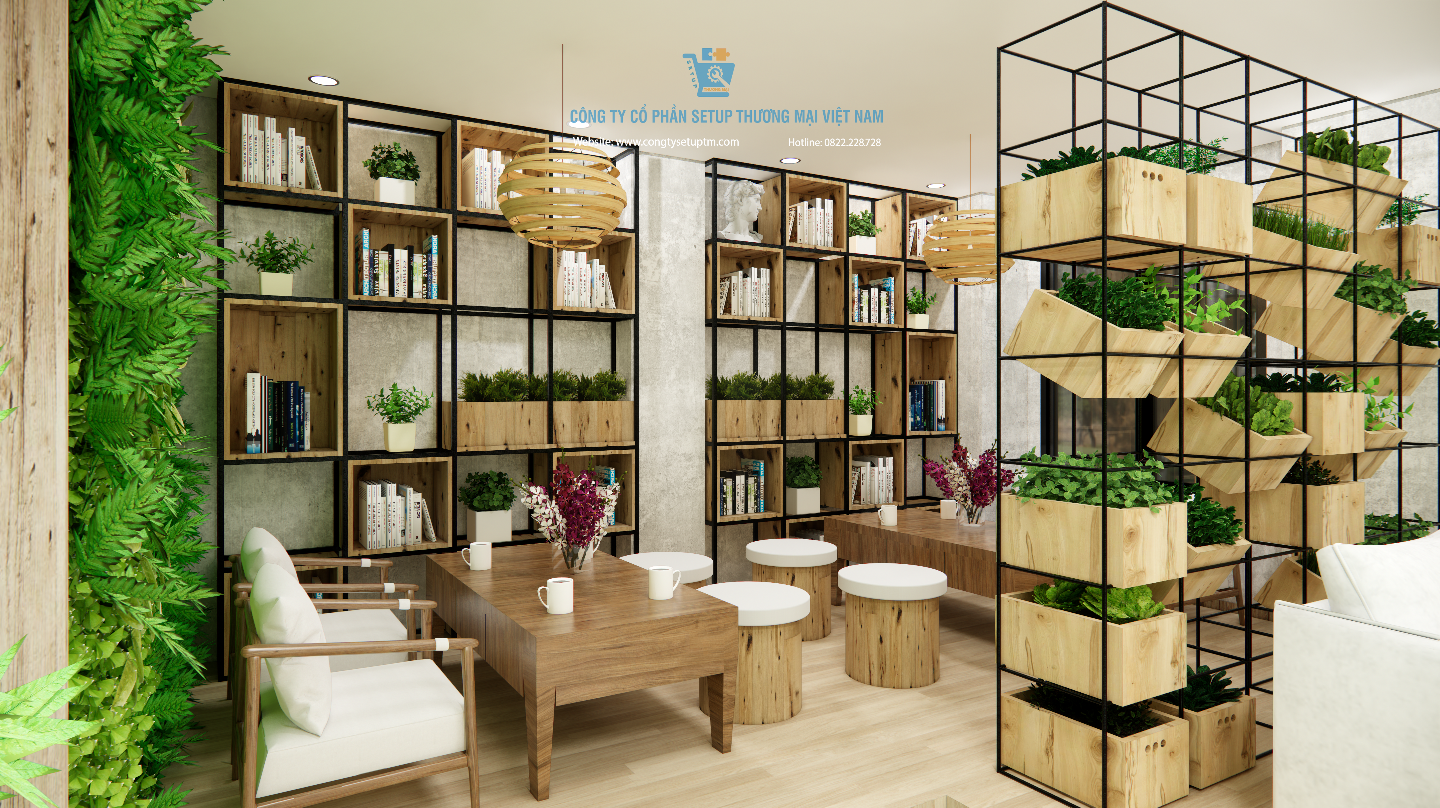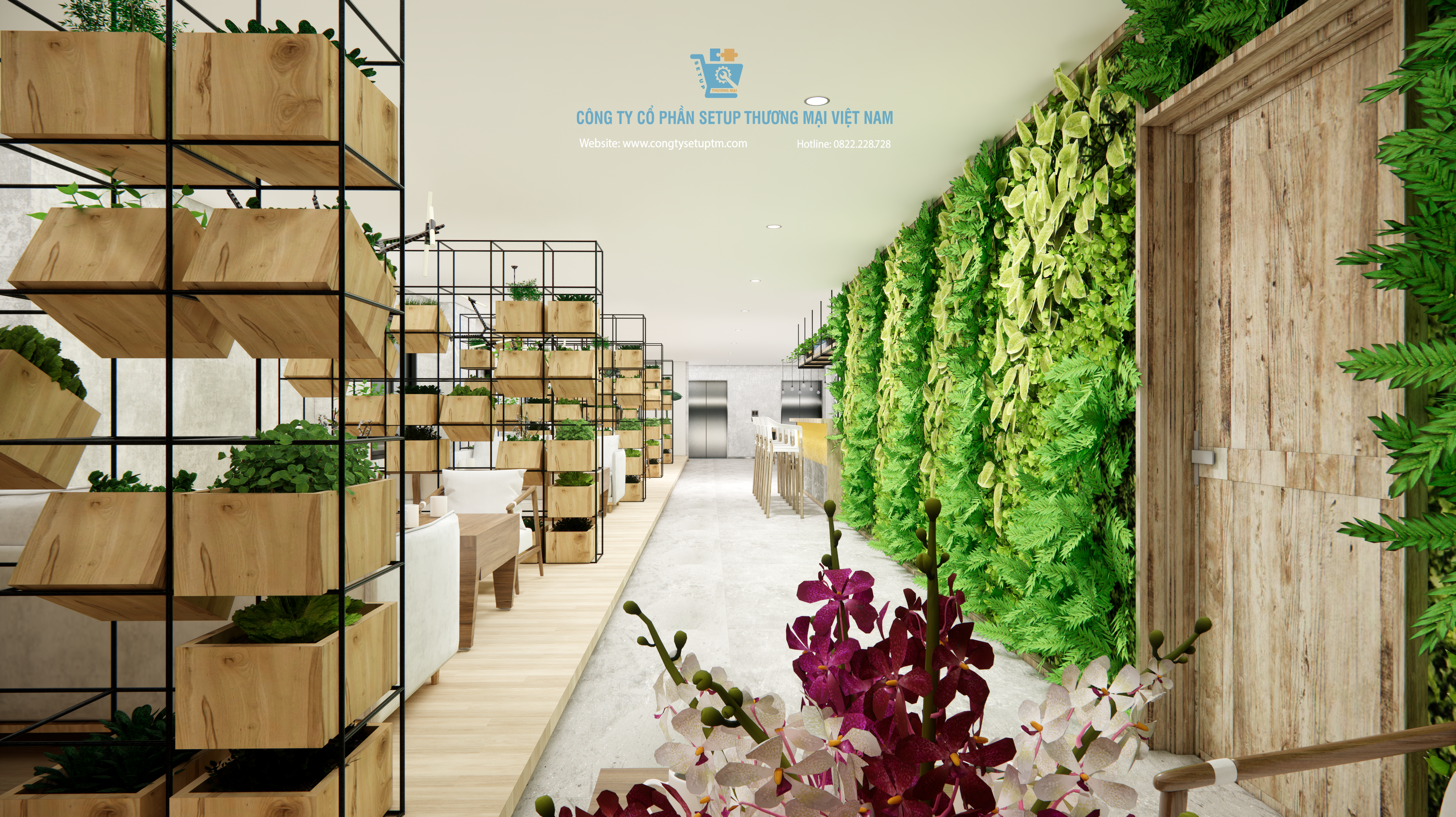 Công trình được Công ty Cổ phần Setup Thương Mại Việt Nam thiết kế và thi công trọn gói, từ khảo sát – ý tưởng – thiết kế – thi công – hoàn thiện – setup vận hành.