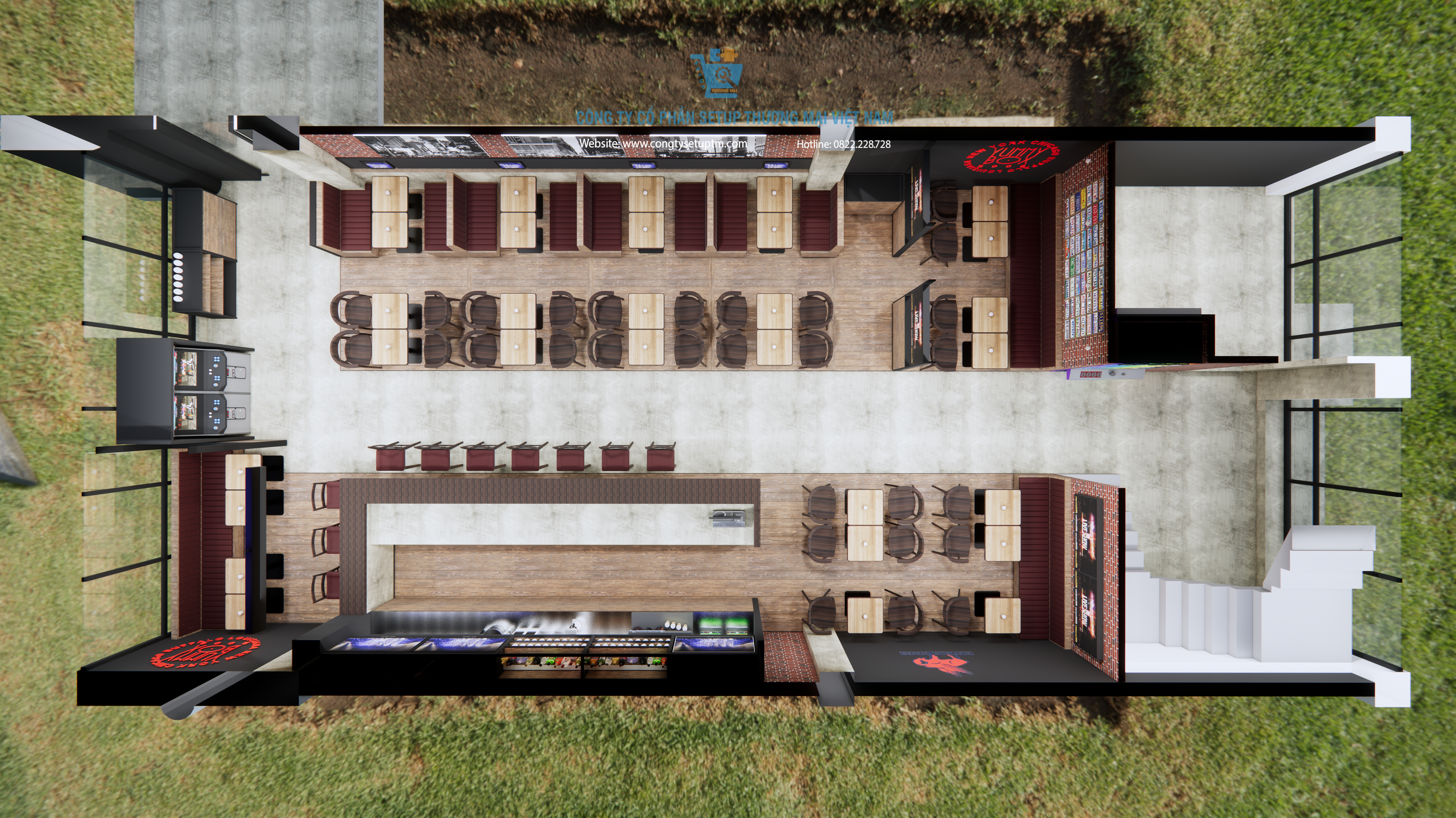 Dự án được Công ty Cổ phần Setup Thương Mại Việt Nam – đơn vị hàng đầu trong lĩnh vực thiết kế và thi công quán cafe chuyên nghiệp – trực tiếp thực hiện, mang đến không gian vừa mang tính thẩm mỹ cao, vừa tối ưu chi phí đầu tư.