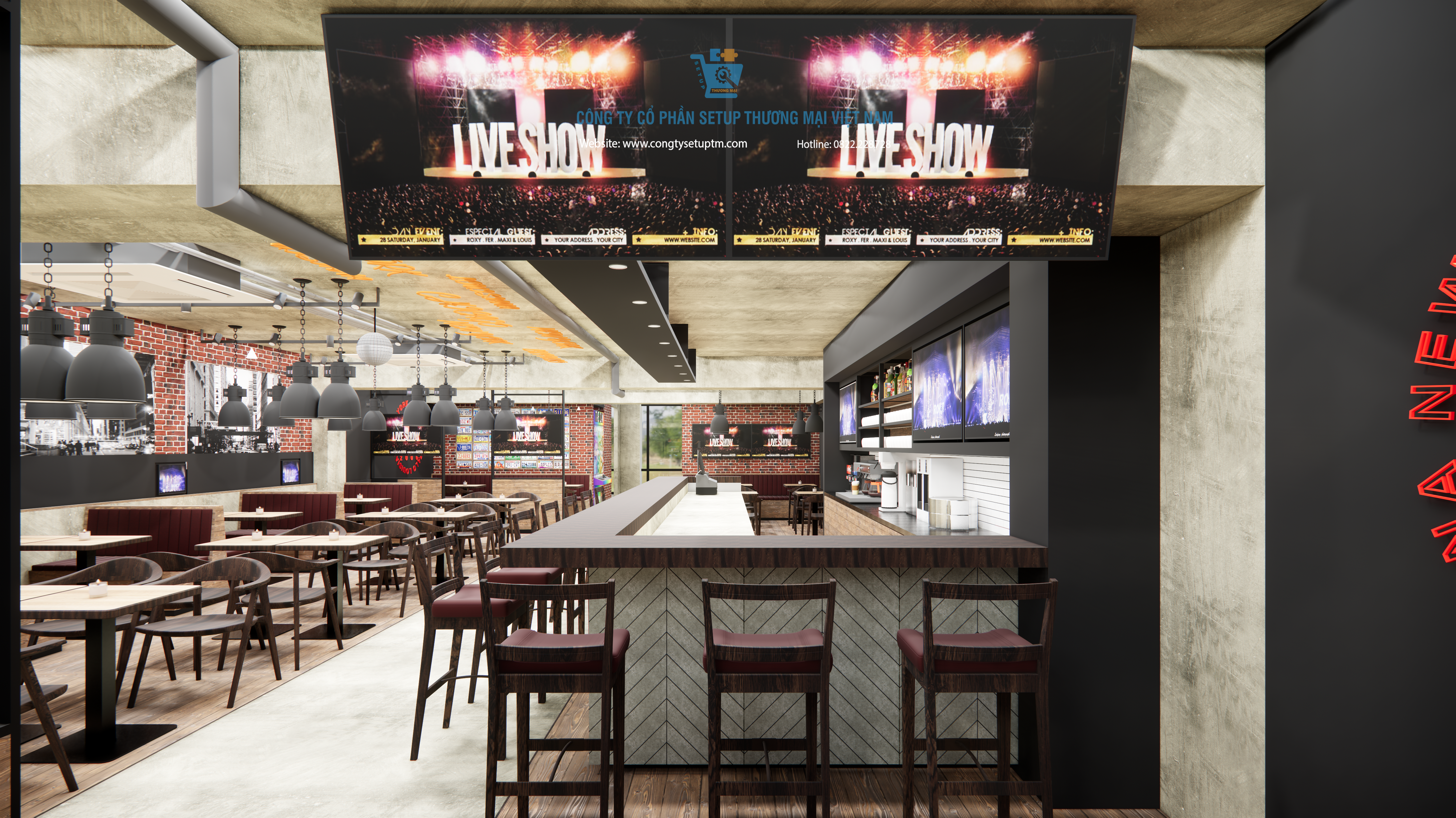 Dự án được Công ty Cổ phần Setup Thương Mại Việt Nam – đơn vị hàng đầu trong lĩnh vực thiết kế và thi công quán cafe chuyên nghiệp – trực tiếp thực hiện, mang đến không gian vừa mang tính thẩm mỹ cao, vừa tối ưu chi phí đầu tư.