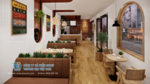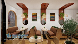 Thiết kế 3D chi tiết: Giúp bạn hình dung chính xác quán của mình trước khi thi công, tránh sửa chữa gây lãng phí.